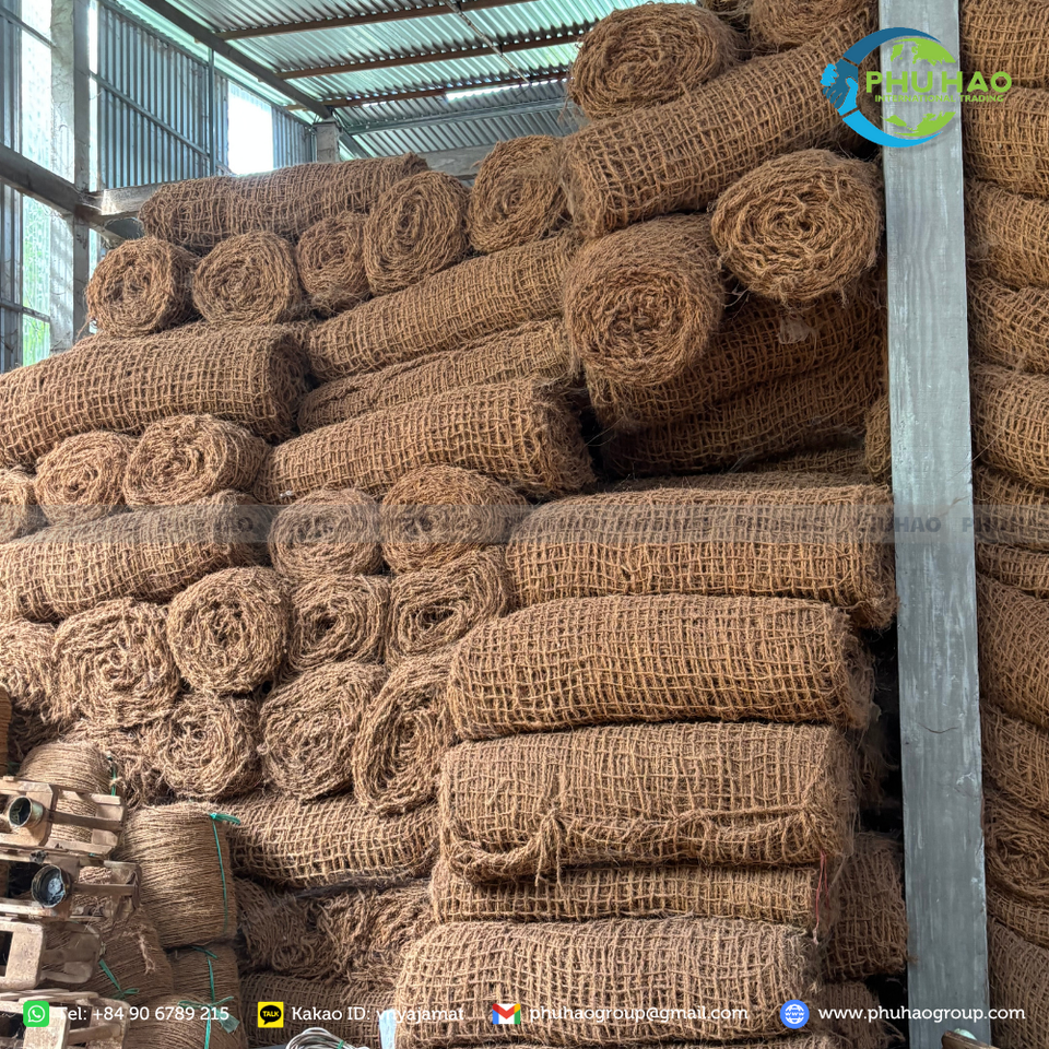 ตาข่ายใยมะพร้าวเป็นมิตรกับสิ่งแวดล้อมสำหรับการปกป้องพื้นดินและการช่วยเหลือการปลูกหญ้าและพืชบนเนินเขาและริมฝั่ง