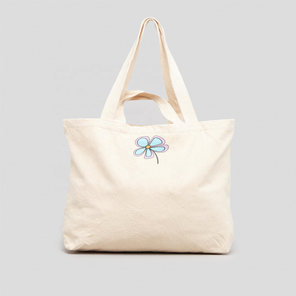กระเป๋าถือผ้าฝ้ายผ้าใบเป็นมิตรกับสิ่งแวดล้อมพร้อมที่จับหนังแฟนซีสะพายไหล่แบบลำลองและกระเป๋าช้อปปิ้ง