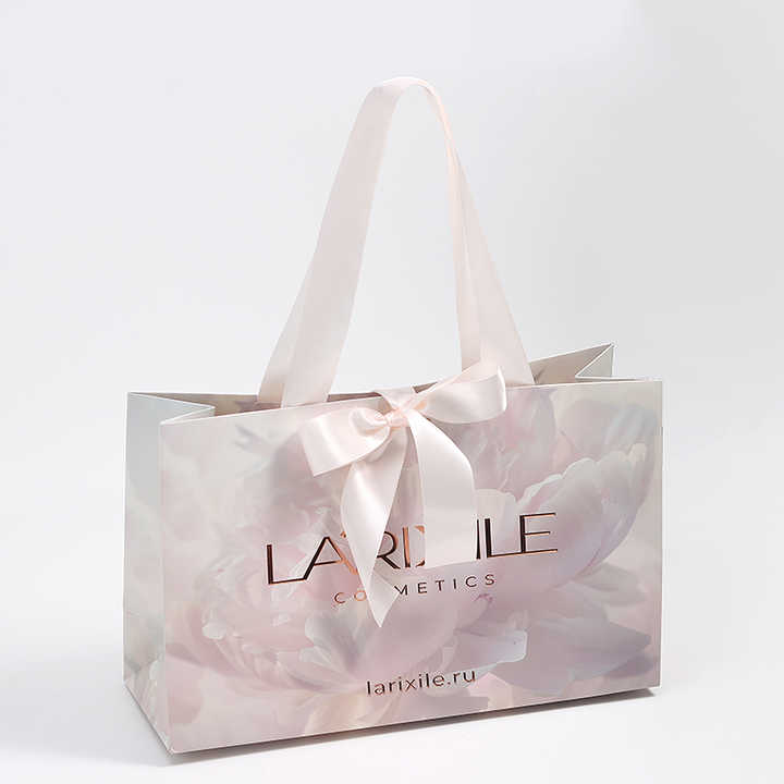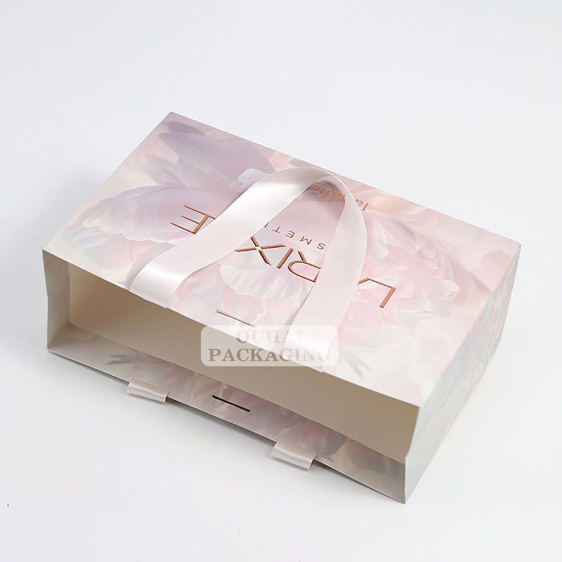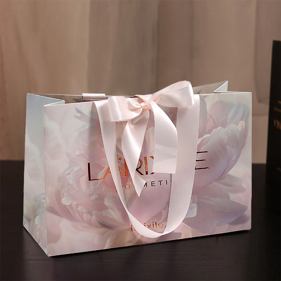 ถุงกระดาษของขวัญแบบเป็นมิตรกับสิ่งแวดล้อม ดีไซน์ดอกไม้หรูหรา พิมพ์ลายพร้อมโบว์ริบบิ้นปิดผนึก ถุงบรรจุภัณฑ์แบบกำหนดเองพร้อมโลโก้