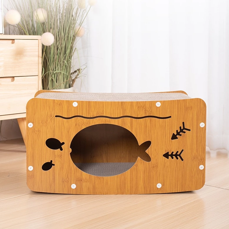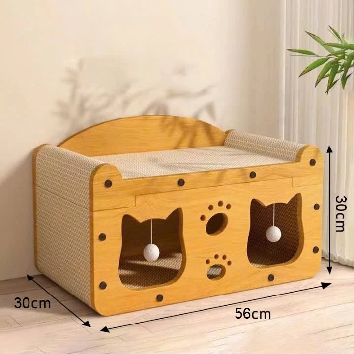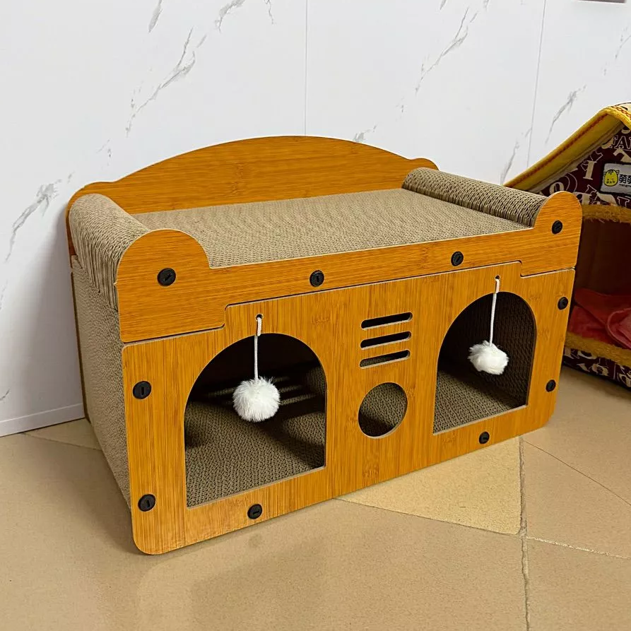 บ้านเกาแมวที่เป็นมิตรกับสิ่งแวดล้อมทำจากกระดาษอัดและกล่อง-เหมาะสำหรับการเกาแมวของคุณ