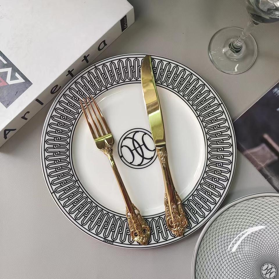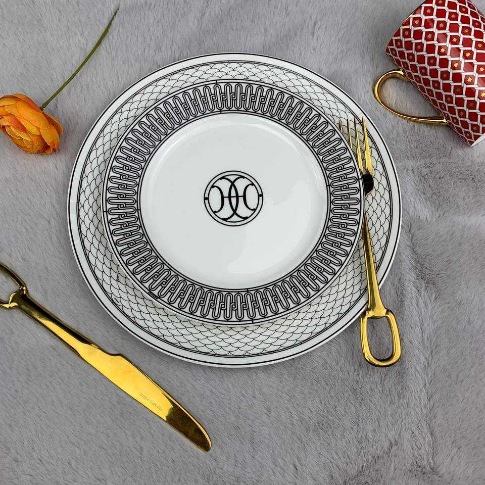 ชุดชามและจานเซรามิกเป็นมิตรกับสิ่งแวดล้อม ภาชนะใส่อาหารหรูหราทันสมัยสำหรับเป็นของขวัญ จานคู่สำหรับอาหารตะวันตก อาหารสเต็ก