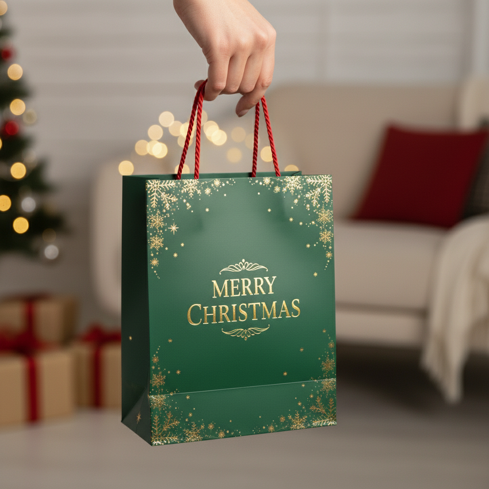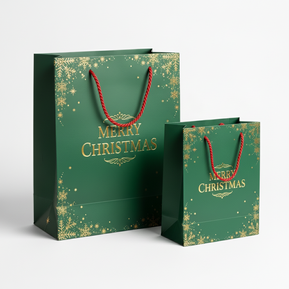 Eco-Friendly Christmas Gift Paper Bag with Handle for Holiday Gift Wrapping Shopping Decoration-Recyclable & Biodegradable