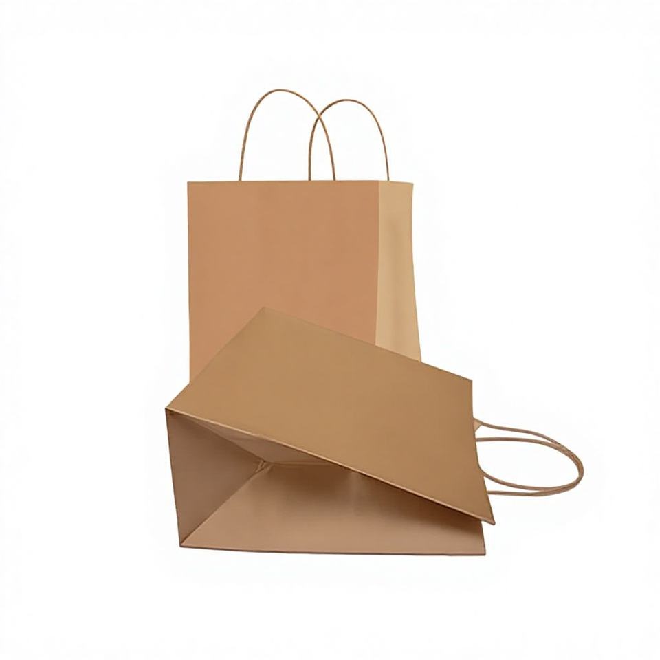 ถุงกระดาษคราฟท์ธรรมดาแบบคลาสสิก เป็นมิตรกับสิ่งแวดล้อม หูหิ้วแบบเกลียว สีน้ำตาล ใช้ซ้ำได้ รีไซเคิลได้ เคลือบ UV เหมาะสำหรับงานแสดงสินค้าและซูเปอร์มาร์เก็ต