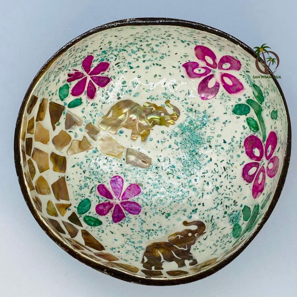 ชามสลัดกะลามะพร้าวสีธรรมชาติดีไซน์ร่วมสมัยเป็นมิตรกับสิ่งแวดล้อมสำหรับการตั้งแคมป์