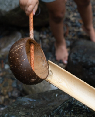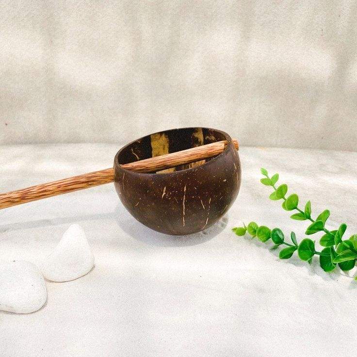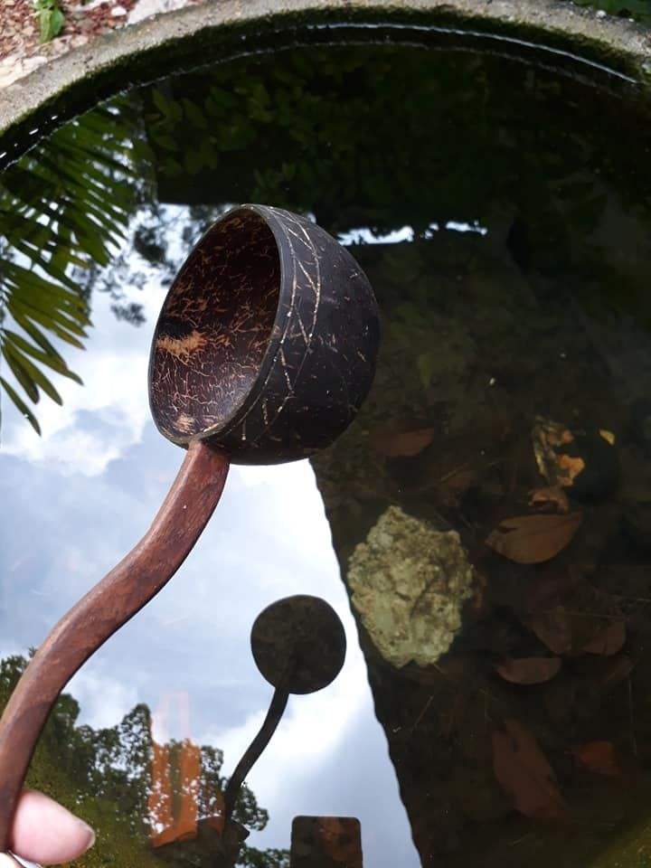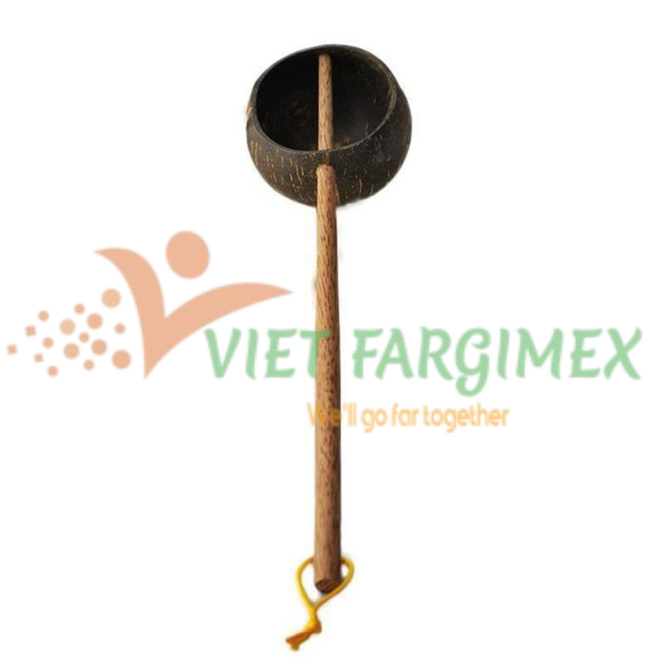 ทัพพีตักน้ำกะลามะพร้าวทำมือพร้อมด้ามไม้มะพร้าวเรียบเป็นมิตรกับสิ่งแวดล้อม