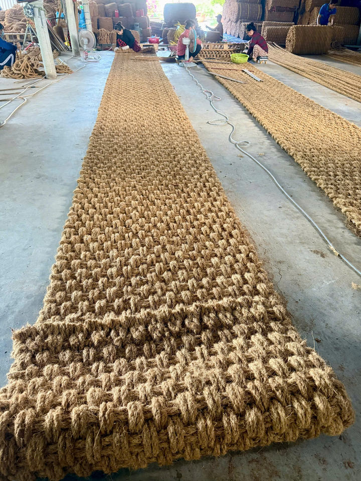แผ่นใยมะพร้าวเป็นมิตรกับสิ่งแวดล้อม ผลิตจากใยมะพร้าวธรรมชาติ น้ำหนัก 65 กก. ขนาด 0.6 ม. x 10 ม. สีน้ำตาล สำหรับปูทางเดิน มีจำหน่าย