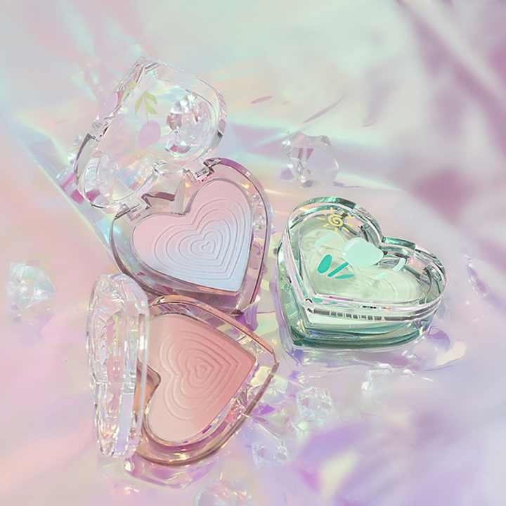 บรรจุภัณฑ์อายแชโดว์แบบตลับพลาสติกขนาดกะทัดรัดรักษ์โลก บรรจุภัณฑ์บลัชครีมคริสตัลรูปหัวใจ