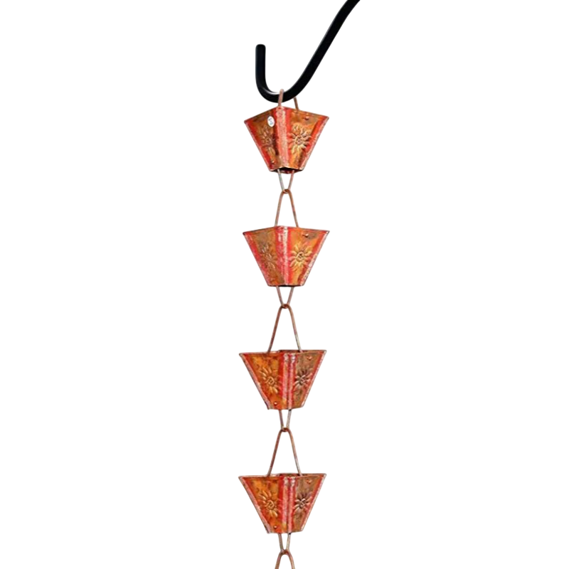 โซ่ฝนสีทองแดงเป็นมิตรกับสิ่งแวดล้อม โซ่ฝนโลหะตกแต่งสำหรับบ้านและสวน