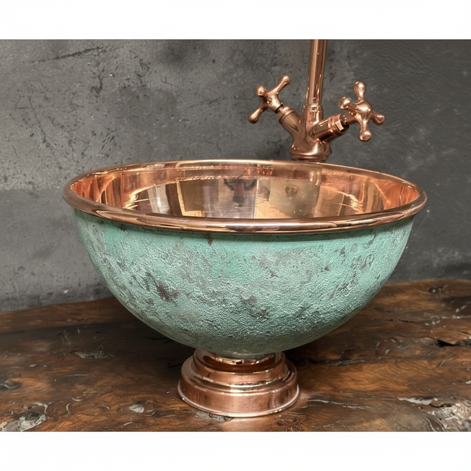 อ่างล้างจานทองแดงเป็นมิตรกับสิ่งแวดล้อมทำจากวัสดุรีไซเคิลพร้อมพื้นผิวแบบชนบทสำหรับสภาพแวดล้อมในครัวสไตล์บ้านไร่