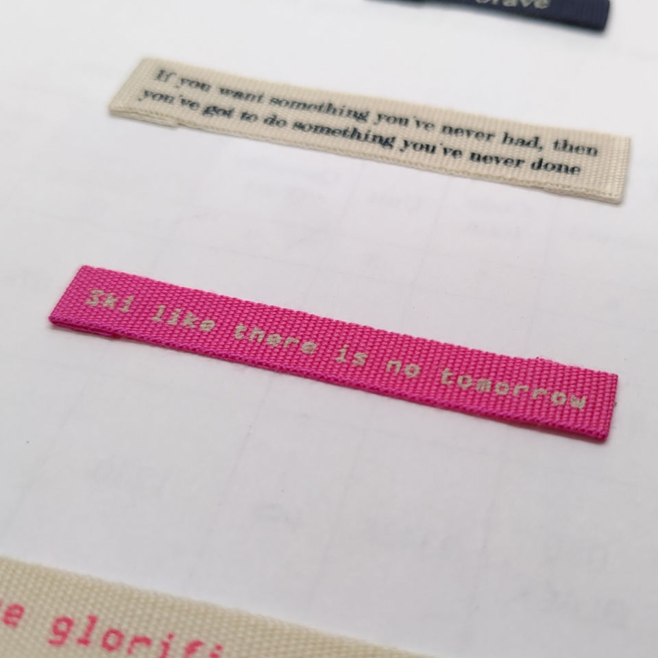 ป้ายผ้าคอตตอนพิมพ์ลายเป็นมิตรกับสิ่งแวดล้อมฉลากรีไซเคิลสีตามสั่งป้ายกำกับดูแลซักได้