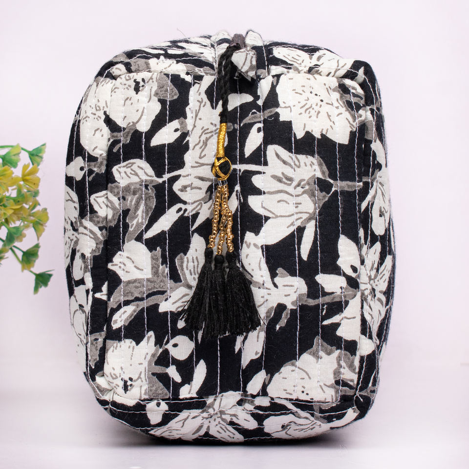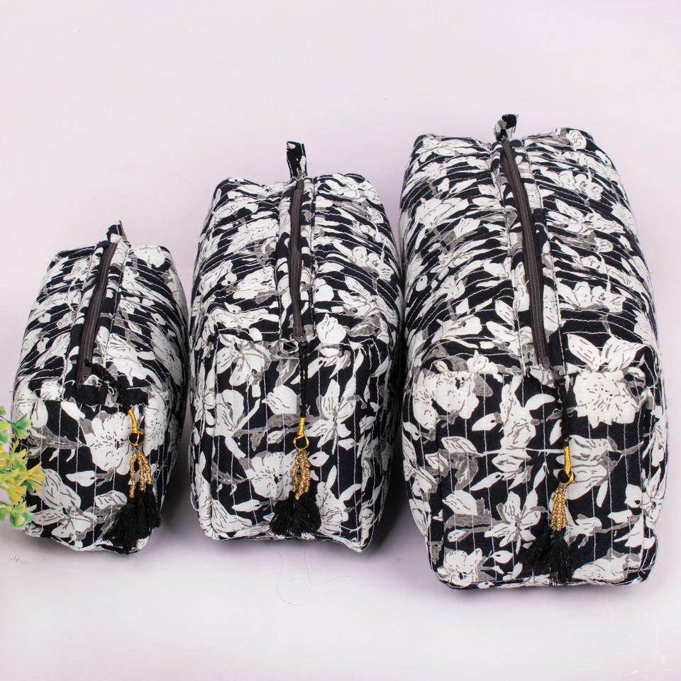 กระเป๋าเครื่องสำอางแบบพกพาขนาดใหญ่ลายดอกไม้ผ้าฝ้ายแบบควิลท์เป็นมิตรกับสิ่งแวดล้อม สำหรับเดินทาง ใช้ได้ทั้งชายและหญิง เหมาะสำหรับใช้เป็นของแจกส่งเสริมการขาย