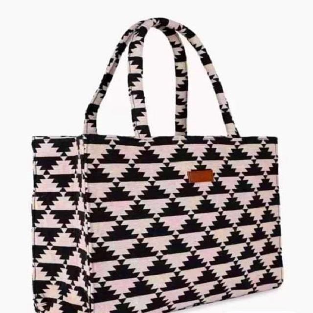กระเป๋าผ้าแจ็คการ์ดสีครีมสีเบจสีดำเป็นมิตรกับสิ่งแวดล้อมกระเป๋าช้อปปิ้งผ้าฝ้ายแบบนำกลับมาใช้ใหม่ได้สำหรับผู้หญิง