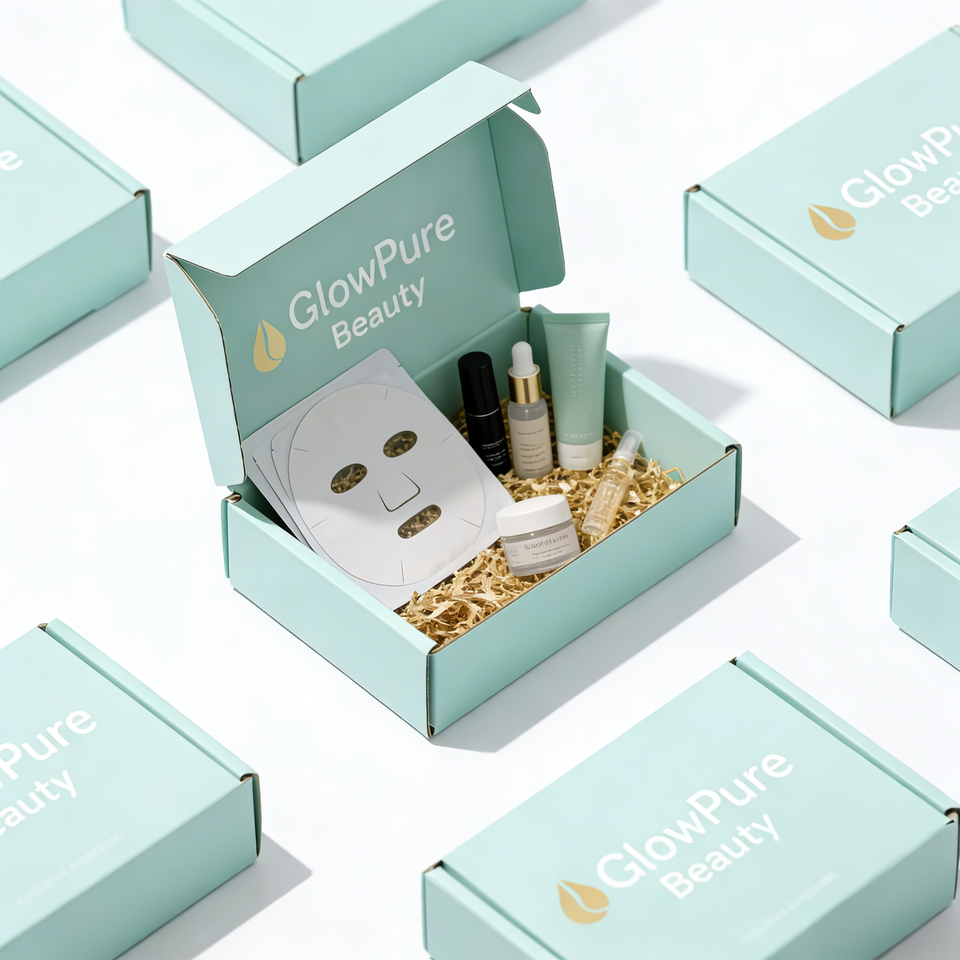 กล่องบรรจุภัณฑ์เครื่องสำอางแบบกำหนดเองรักษ์โลก กล่องไปรษณีย์สำหรับส่งผลิตภัณฑ์ดูแลผิว พิมพ์สีเต็มรูปแบบ โรงงาน OEM ส่งตรง
