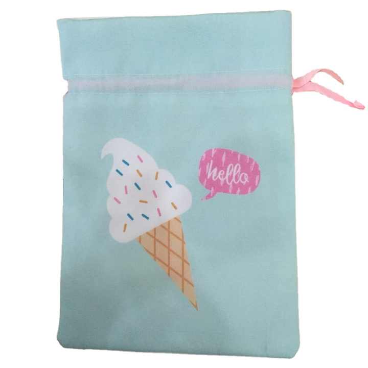 ถุงของขวัญผ้าฝ้ายแบบกำหนดเองรักษ์โลก ย่อยสลายได้ทางชีวภาพ ขายส่ง ถุงผ้ารูปทรงเพชรขนาดเล็กสีขาวแบบมีเชือกผูก ป้องกันฝุ่น พิมพ์ลายซิลค์สกรีน