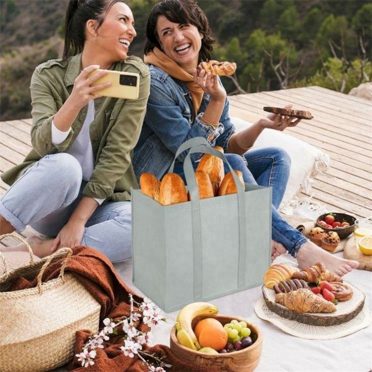 ถุงช้อปปิ้งผ้านอนวูฟเวนด้ามจับยาวกระเป๋าผ้านอนวูฟเวนสำหรับโฆษณาโลโก้ออกแบบได้ตามต้องการเป็นมิตรกับสิ่งแวดล้อม
