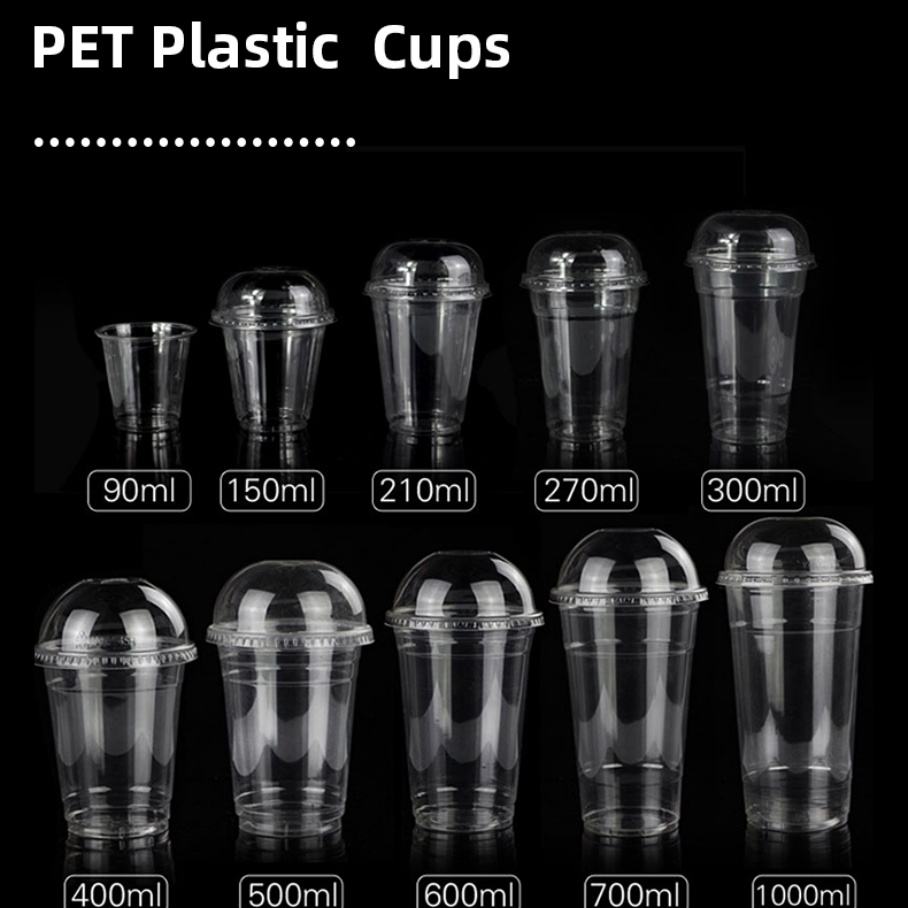 แก้วพลาสติกใส PET แบบใช้ครั้งเดียว พิมพ์ลายได้ เป็นมิตรกับสิ่งแวดล้อม สำหรับชาไข่มุก เบียร์ พร้อมฝาโดม/ฝาเรียบ