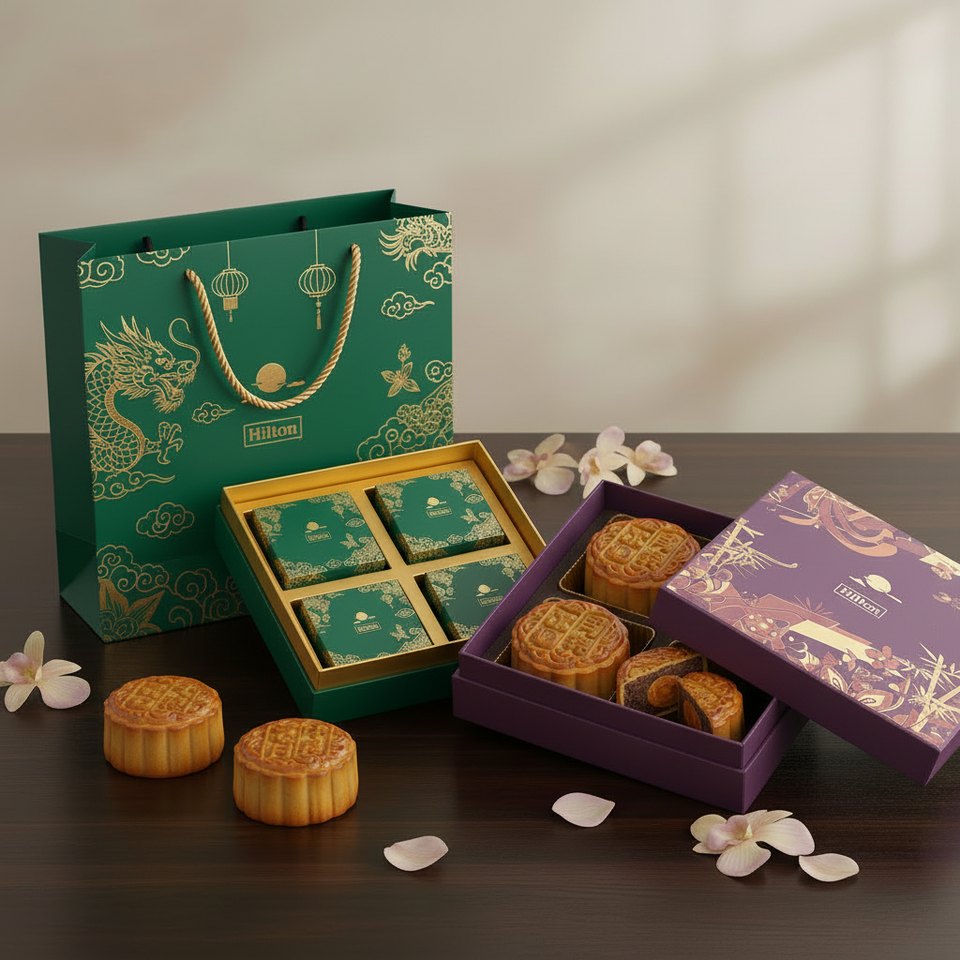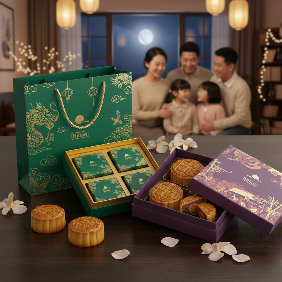 กล่องบรรจุภัณฑ์ขนมไหว้พระจันทร์แบบกำหนดเองเป็นมิตรกับสิ่งแวดล้อม สำหรับเทศกาลกลางฤดูใบไม้ร่วง บรรจุภัณฑ์ของขวัญเกรดอาหาร