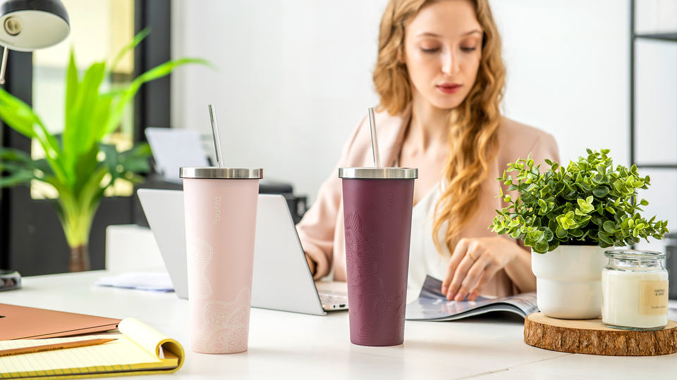 แก้วน้ำเก็บอุณหภูมิทำจากสเตนเลสสตีลพร้อมหลอดเป็นมิตรกับสิ่งแวดล้อม