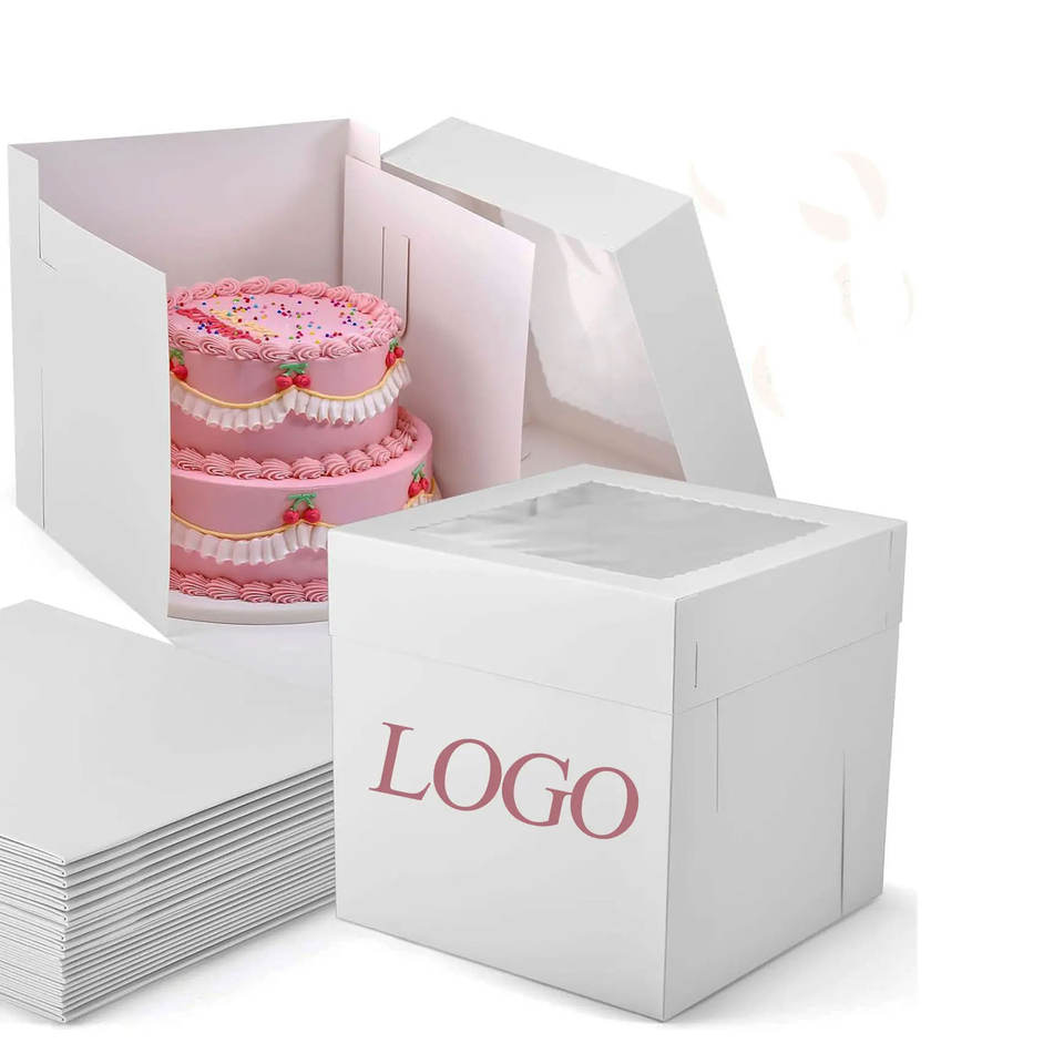 กล่องเบเกอรี่ย่อยสลายได้สีขาวเป็นมิตรกับสิ่งแวดล้อมพร้อมหน้าต่างขนาดใหญ่บรรจุภัณฑ์กระดาษส่วนบุคคลเค้กขนมปังปาร์ตี้
