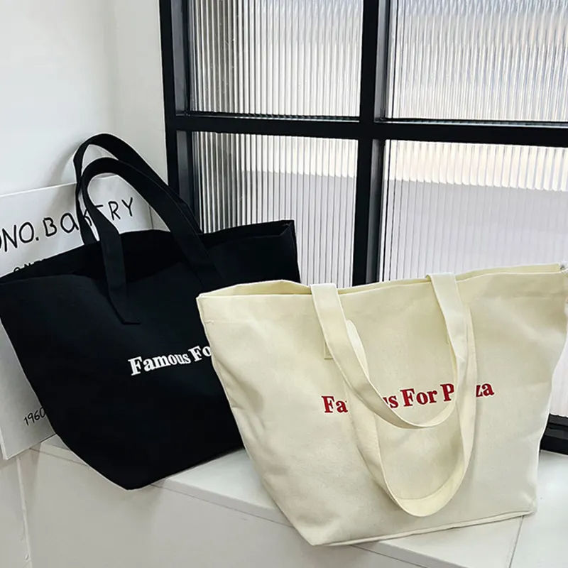 ถุงผ้าแคนวาสแบบเปิดปิดเป็นมิตรกับสิ่งแวดล้อมผ้าแคนวาสแบบธรรมดารีไซเคิลได้พิมพ์โลโก้ได้ตามต้องการ3L + ความจุ
