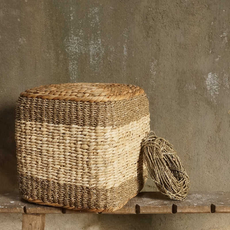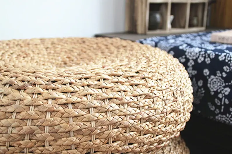 เก้าอี้ตกแต่งเป็นมิตรกับสิ่งแวดล้อม,ม้านั่งหญ้าทะเลธรรมชาติม้านั่งออตโตมันแท่นทอมือสำหรับนั่งและพักผ่อน