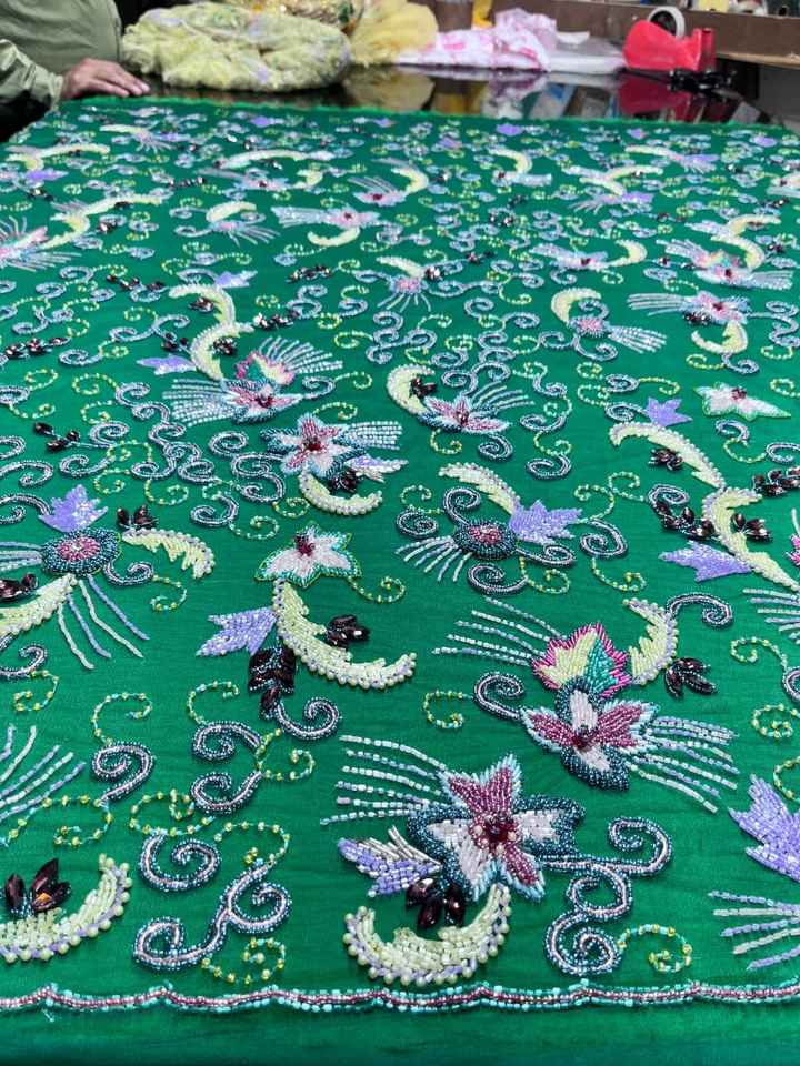ผ้าทูลผ้าฝ้ายปักด้วยมือเป็นมิตรกับสิ่งแวดล้อมผ้าโปร่ง100% ปักด้วยมือสไตล์ไขว้แบบ120 "ความกว้างของนักออกแบบที่เป็นมิตรกับสิ่งแวดล้อม