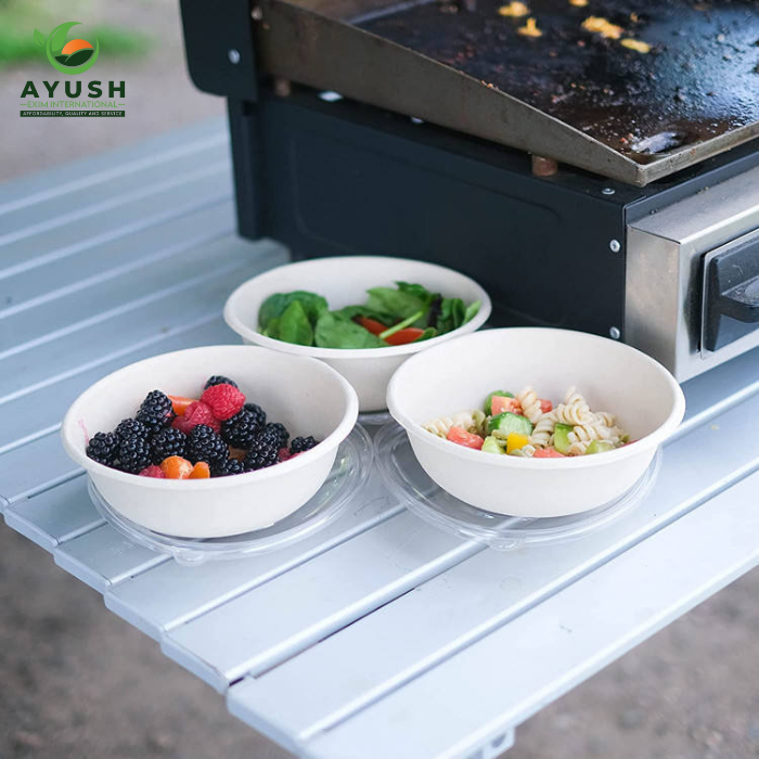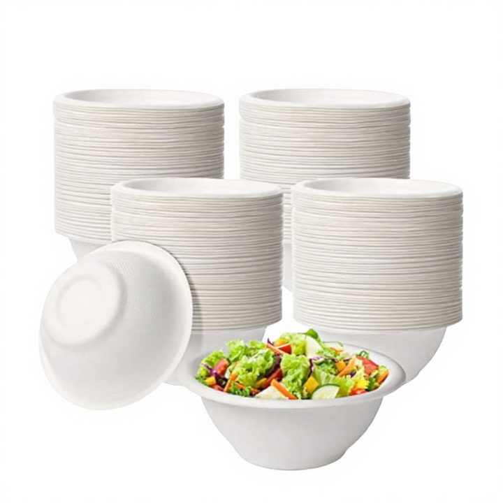 ชามกระดาษย่อยสลายได้แบบใช้แล้วทิ้งที่เป็นมิตรกับสิ่งแวดล้อมผลิตจากเยื่ออ้อยสำหรับงานเลี้ยงบุฟเฟ่ต์และร้านอาหาร