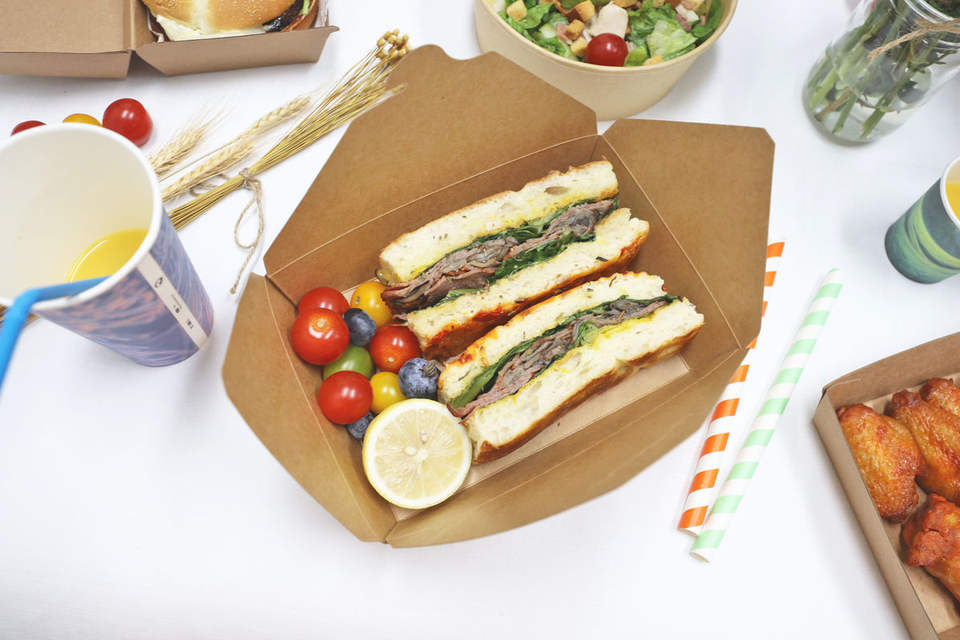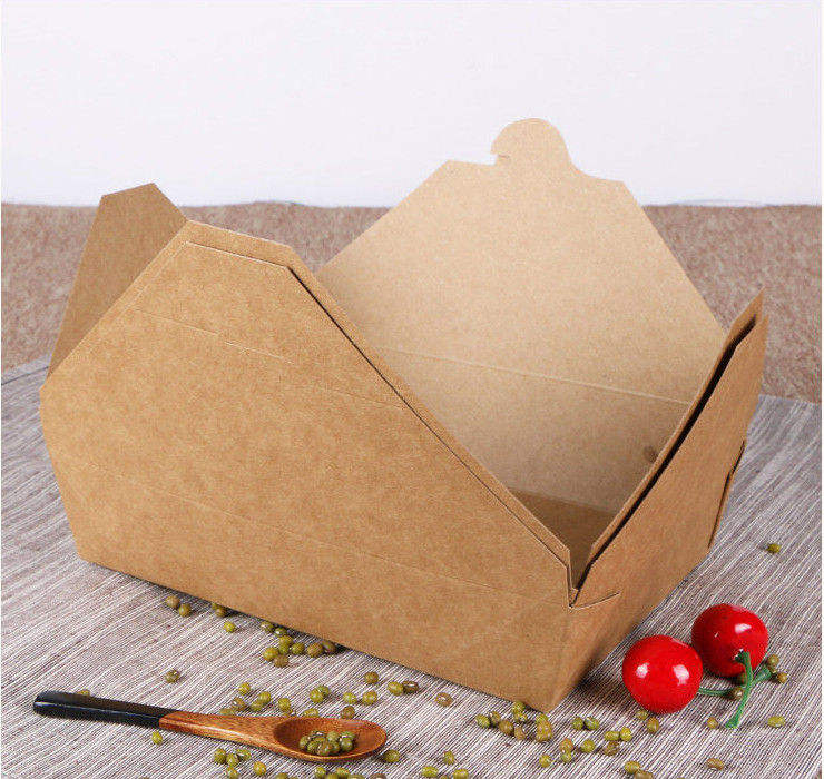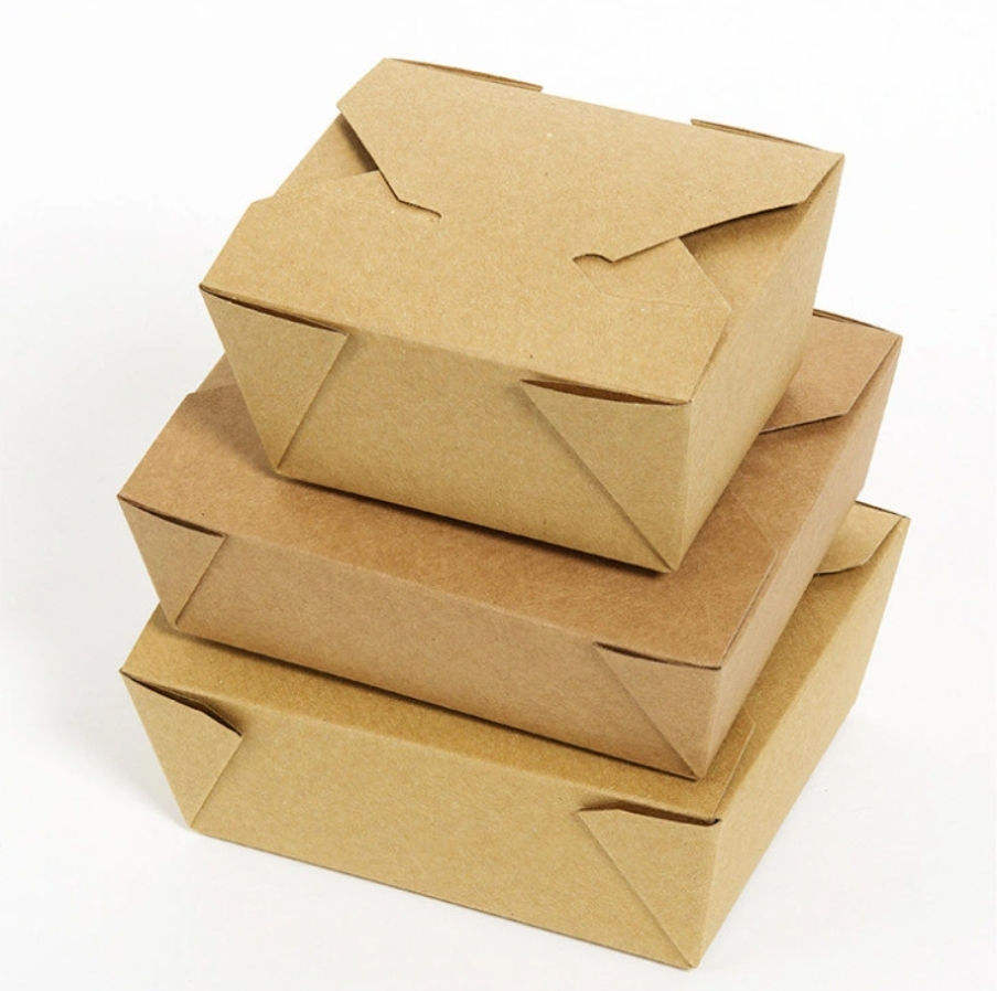 กล่องอาหารกลางวันแบบใช้แล้วทิ้งที่เป็นมิตรกับสิ่งแวดล้อม ทำจากกระดาษคราฟท์ สำหรับอาหารแบบนำกลับบ้าน อาหารจานด่วน และบรรจุภัณฑ์กระดาษสำหรับร้านอาหาร
