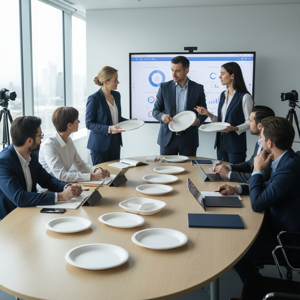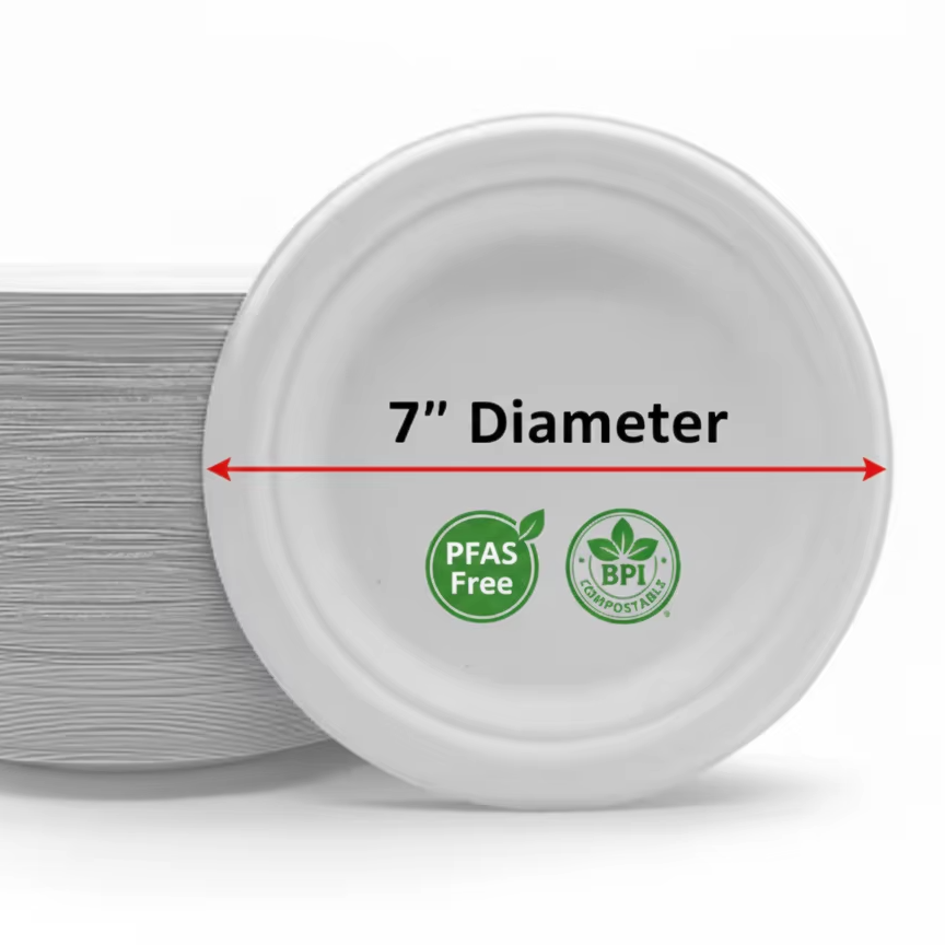 จานชานอ้อยแบบใช้แล้วทิ้งที่เป็นมิตรกับสิ่งแวดล้อม ย่อยสลายได้ และเป็นภาชนะใส่อาหารจากเยื่อกระดาษสำหรับบริการอาหาร