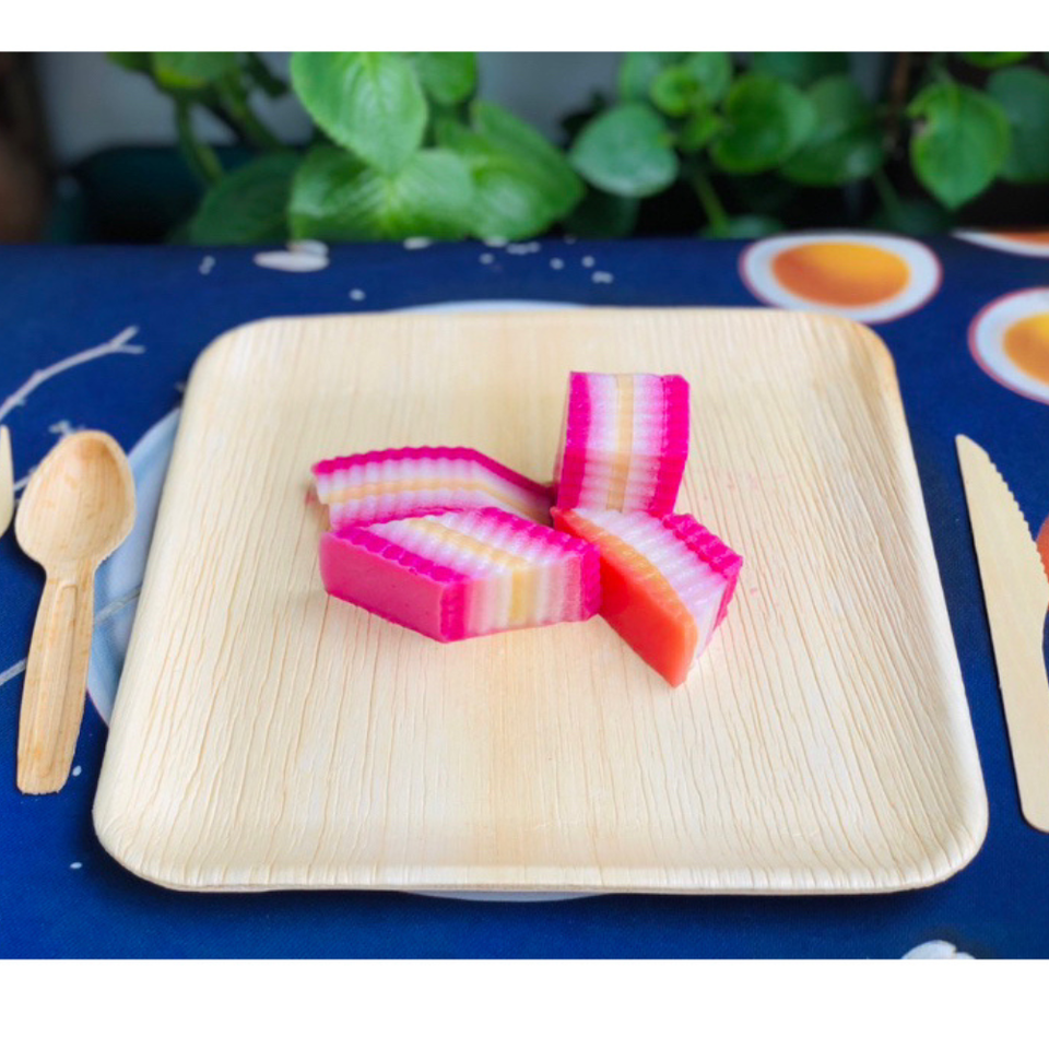 ถาดรองใบปาล์มลายดอกไม้ดีไซน์ใหม่สำหรับงานแต่งงานในเวียดนามแผ่นหวายแบบใช้แล้วทิ้งเป็นมิตรกับสิ่งแวดล้อม