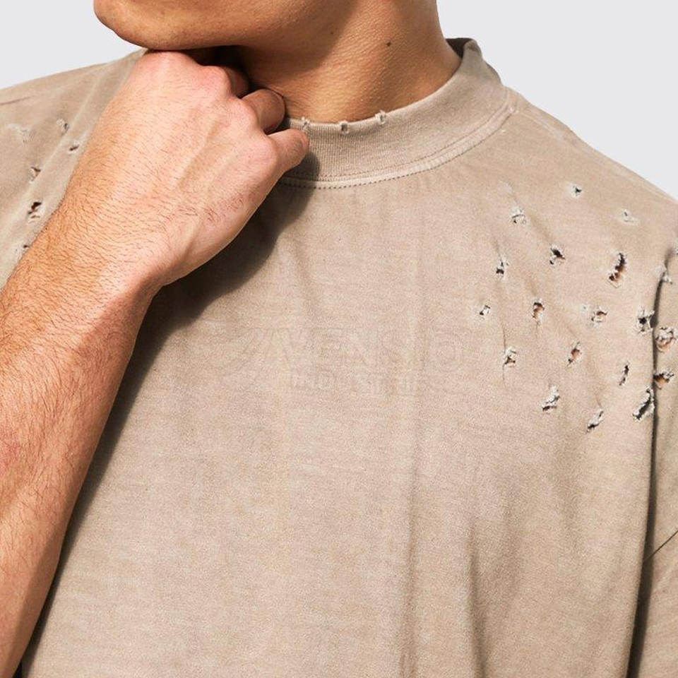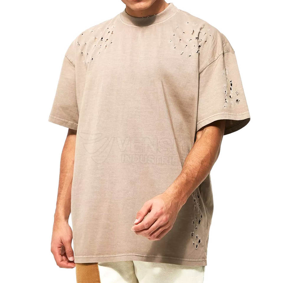 เสื้อยืดผู้ชายสั่งทำพิเศษ ผ้าฝ้ายผสมโพลีเอสเตอร์ รีไซเคิล ทรงดิสเทรส สีและโลโก้ตามสั่ง แห้งเร็ว ระบายอากาศดี ดีไซน์ล่าสุด