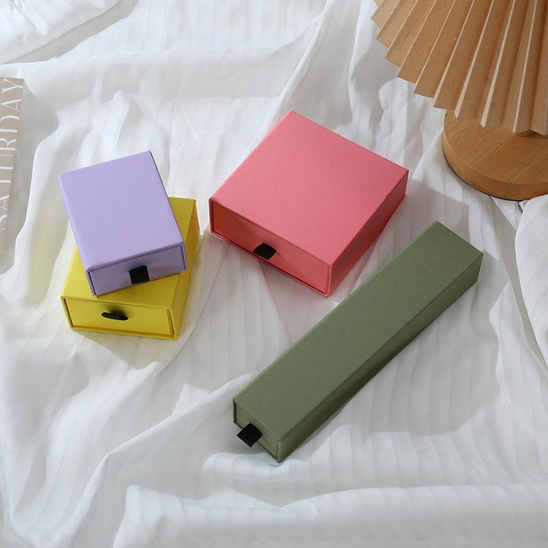 กล่องใส่เครื่องประดับแบบลิ้นชักรักษ์โลกบุผ้ากำมะหยี่ พร้อมบรรจุภัณฑ์กระดาษสีตามสั่งสำหรับแหวน ต่างหู สร้อยคอ