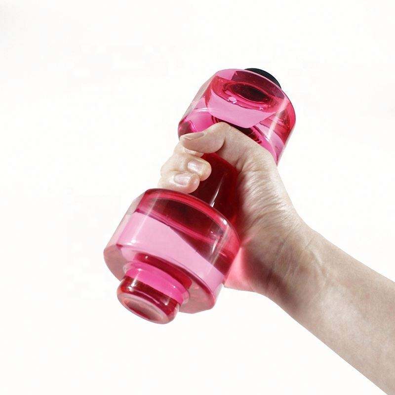 ขวดน้ำรูปดัมเบลแบบพกพาเป็นมิตรกับสิ่งแวดล้อม สีชมพู ขวดน้ำพลาสติกสำหรับเล่นกีฬา พร้อมโลโก้สั่งทำ