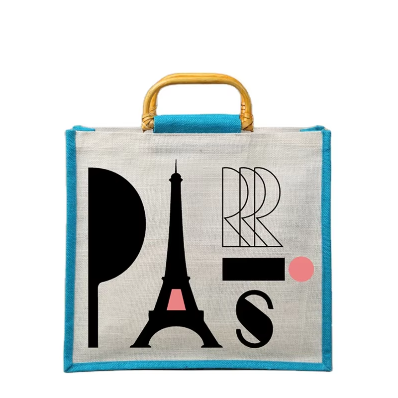 ถุงช้อปปิ้งผ้าปอกระเจาหลากสีทนทานเป็นมิตรกับสิ่งแวดล้อมพร้อมลวดลายเรขาคณิตเคลือบลามิเนตและด้ามอ้อยสำหรับใช้ในชีวิตประจำวัน