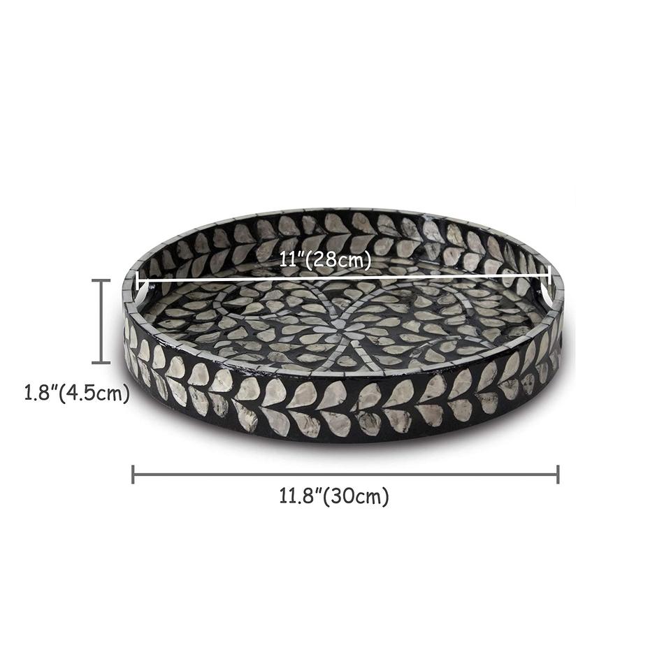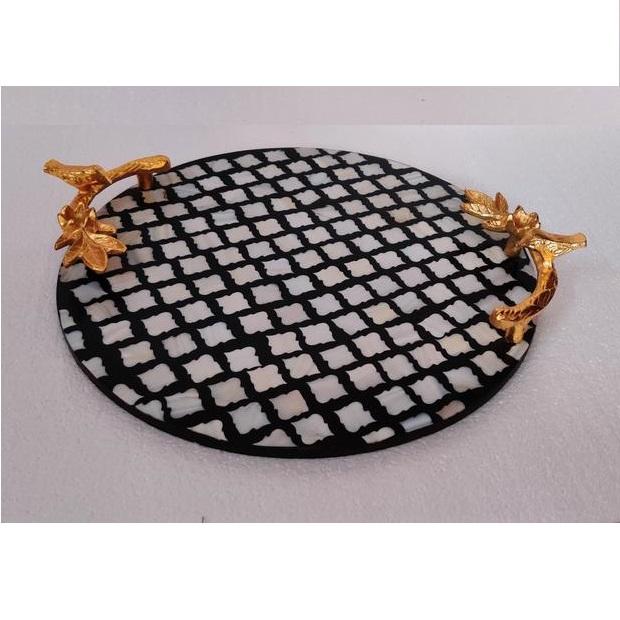 ถาดเสิร์ฟหอยมุกทนทานเป็นมิตรกับสิ่งแวดล้อมพร้อมลวดลายเรขาคณิตและที่จับถาดตกแต่งช่างฝีมือ
