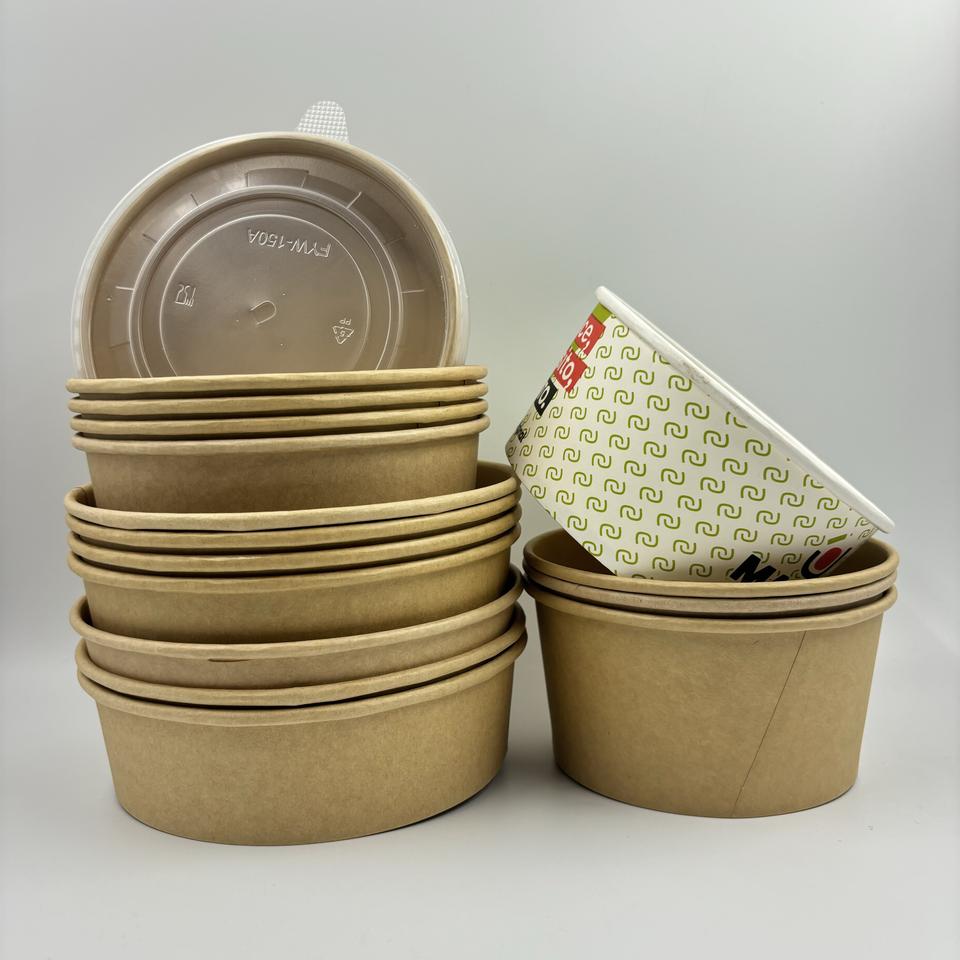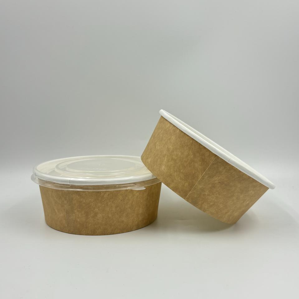 ชามกระดาษคราฟท์สีขาวแบบใช้ครั้งเดียวสำหรับใส่สลัด ข้าว อาหารกลางวัน เป็นมิตรกับสิ่งแวดล้อม พร้อมฝา PP