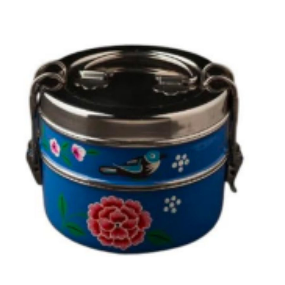 กล่องข้าวกลางวัน2ช่องเคลือบสแตนเลสสตีลสองชั้นสำหรับใช้ในสำนักงานโรงเรียนสีสันสดใส