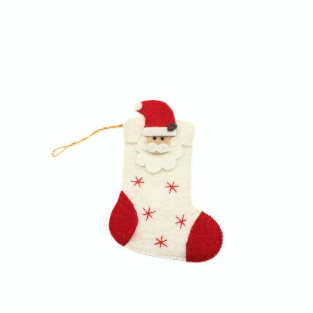 ถุงเท้าคริสต์มาสซานต้าทำจากผ้าสักหลาดแบบรักษ์โลก พร้อมรายละเอียดงานเย็บมือ ดีไซน์ซานต้าทำมือ