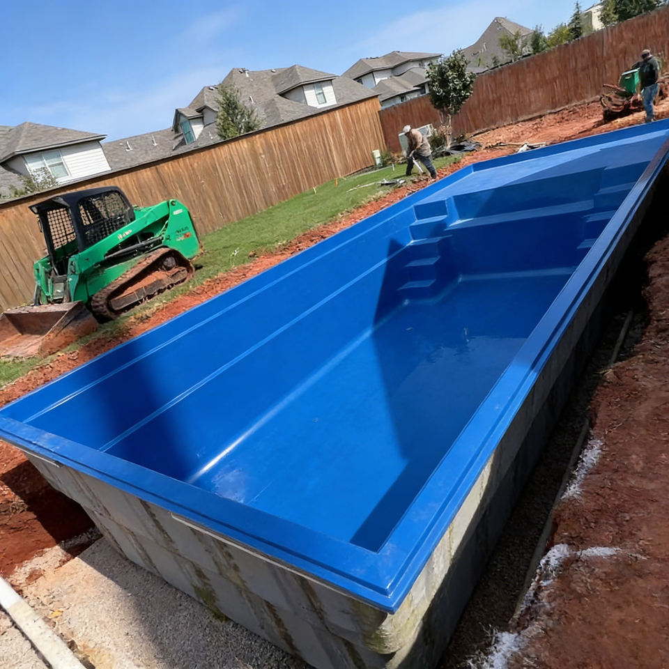 สระว่ายน้ำไฟเบอร์กลาสที่เป็นมิตรต่อสิ่งแวดล้อม ทนทาน ป้องกันรังสียูวี เหมาะสำหรับความสนุกสนานของครอบครัวในพื้นที่กลางแจ้งของคุณ