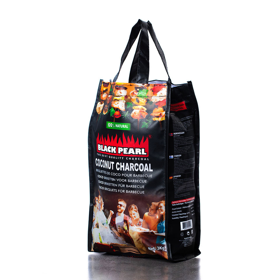 ถ่านอัดแท่งจากกะลามะพร้าวคุณภาพดี เป็นมิตรต่อสิ่งแวดล้อม ให้ความร้อนยาวนานกว่า 3 ชั่วโมง แคลอรี่ 32,000 รูปแบบ NA7 สีดำมุก