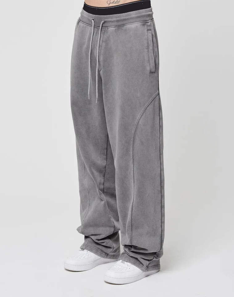 กางเกงจ็อกเกอร์ผ้าฟลีซซับในแบบเป็นมิตรกับสิ่งแวดล้อม ล้างสีแบบ Acid Wash ผ้าฝ้ายเนื้อหนา รับผลิตแบบ OEM ขายส่ง กางเกงจ็อกเกอร์ผู้ชายแบบฟอกสี