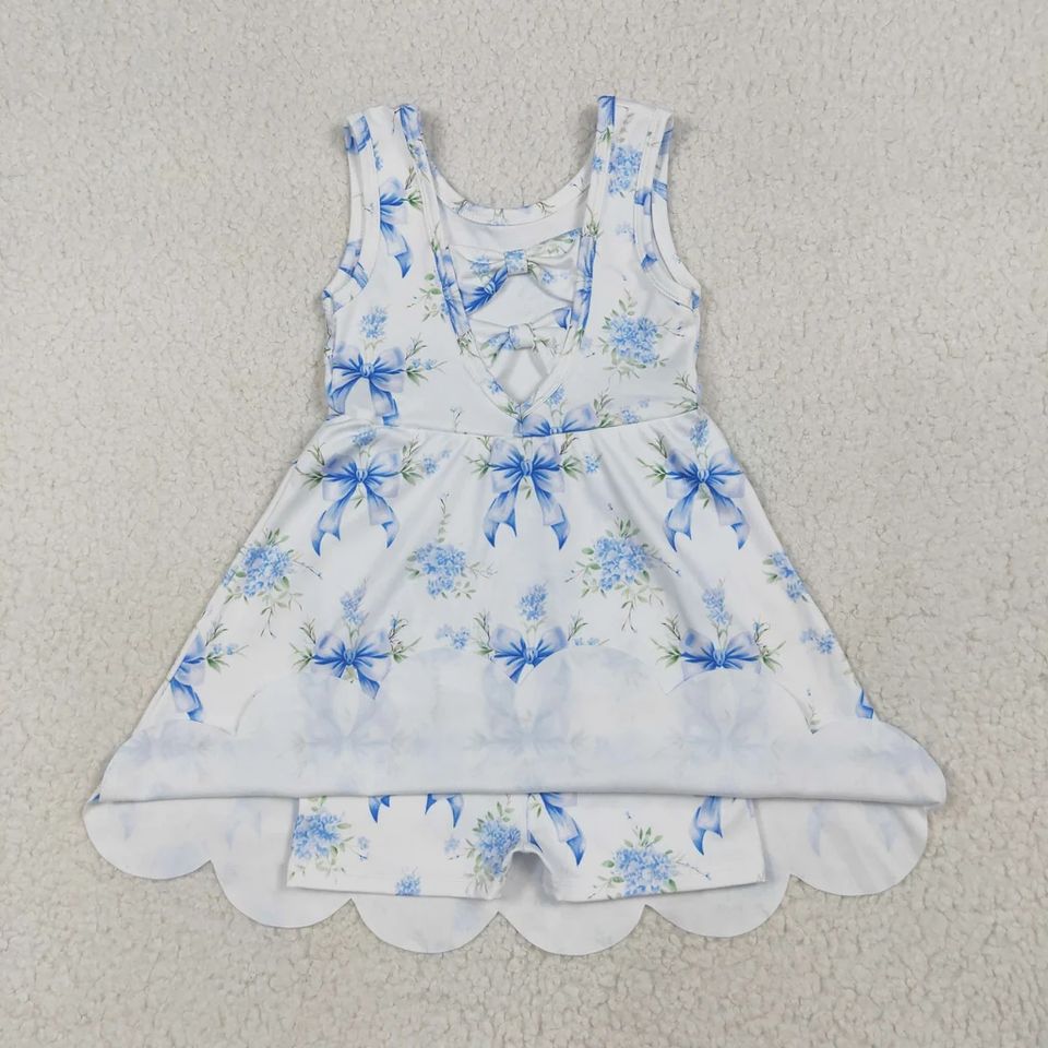 ชุดเดรสวันพีซลายดอกไม้รักษ์โลกสำหรับเด็กผู้หญิงใส่เล่นโยคะในช่วงฤดูร้อน