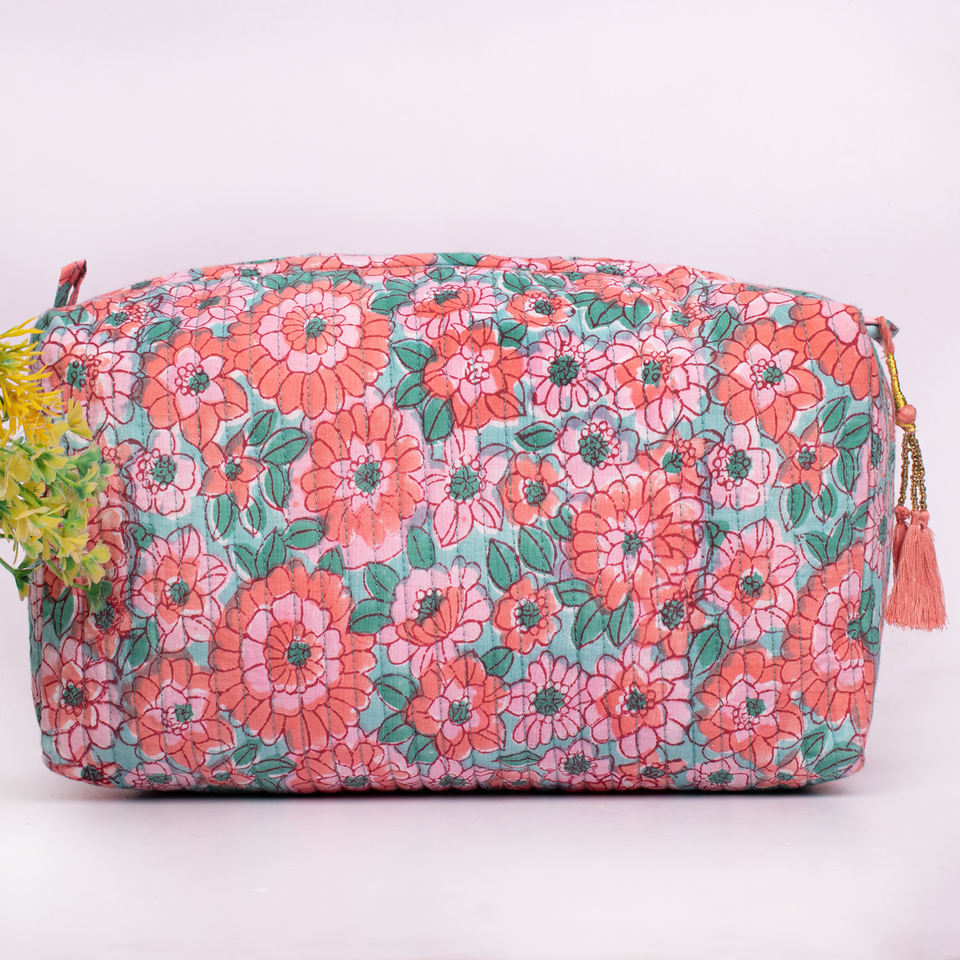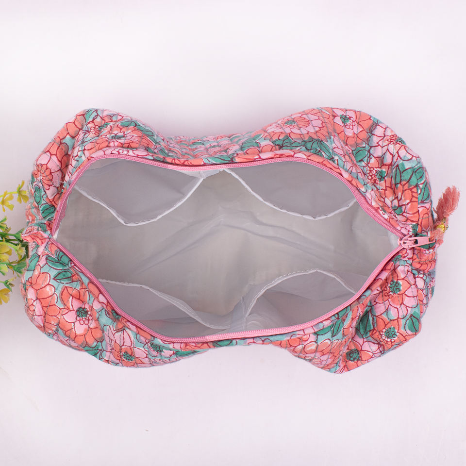 กระเป๋าเครื่องสำอางพิมพ์ลายดอกไม้รักษ์โลกแบบใช้ซ้ำได้สำหรับการเดินทางอเนกประสงค์ ชุดกระเป๋าซิป กระเป๋าจัดระเบียบเครื่องสำอางที่ทนทาน