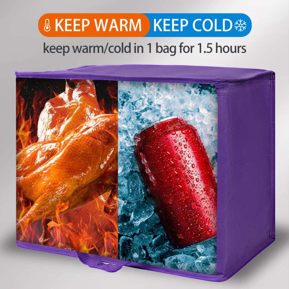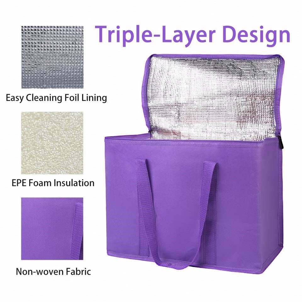 กระเป๋าใส่อาหารกลางวันแบบพับได้ เป็นมิตรกับสิ่งแวดล้อม ทำจากผ้าไม่ถักทอ ช่วยรักษาอุณหภูมิ ใช้ซ้ำได้ เหมาะสำหรับปิกนิก กระเป๋าเก็บความเย็นสำหรับใส่อาหาร กระเป๋าใส่ของชำแบบมีซิป