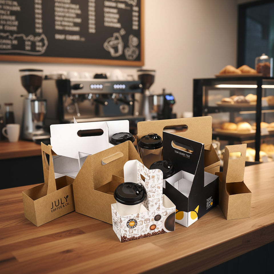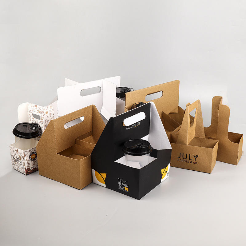 ที่ใส่แก้วกระดาษคราฟท์แบบพกพา เป็นมิตรกับสิ่งแวดล้อม แข็งแรง ทนทาน พร้อมหูหิ้ว สำหรับใส่เครื่องดื่มกาแฟแบบนำกลับบ้าน