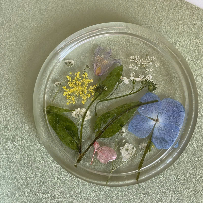 ชื่อผลิตภัณฑ์:ที่รองแก้วเรซินลายดอกไม้ที่รองแก้วทำจากเรซินดอกไม้แห้ง