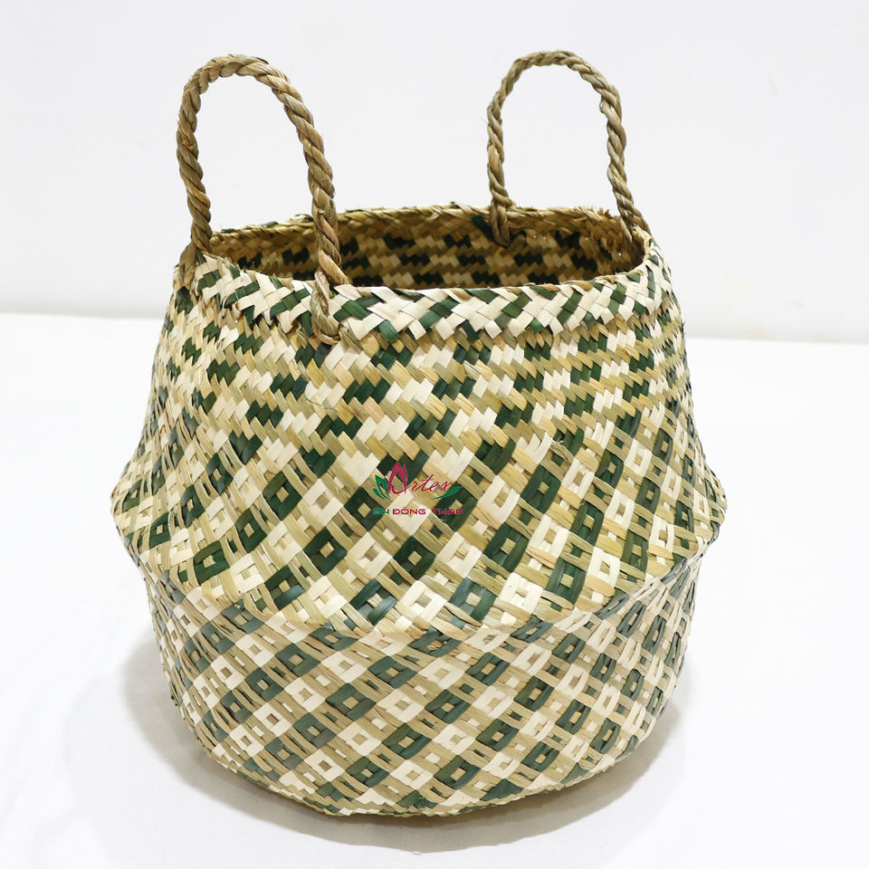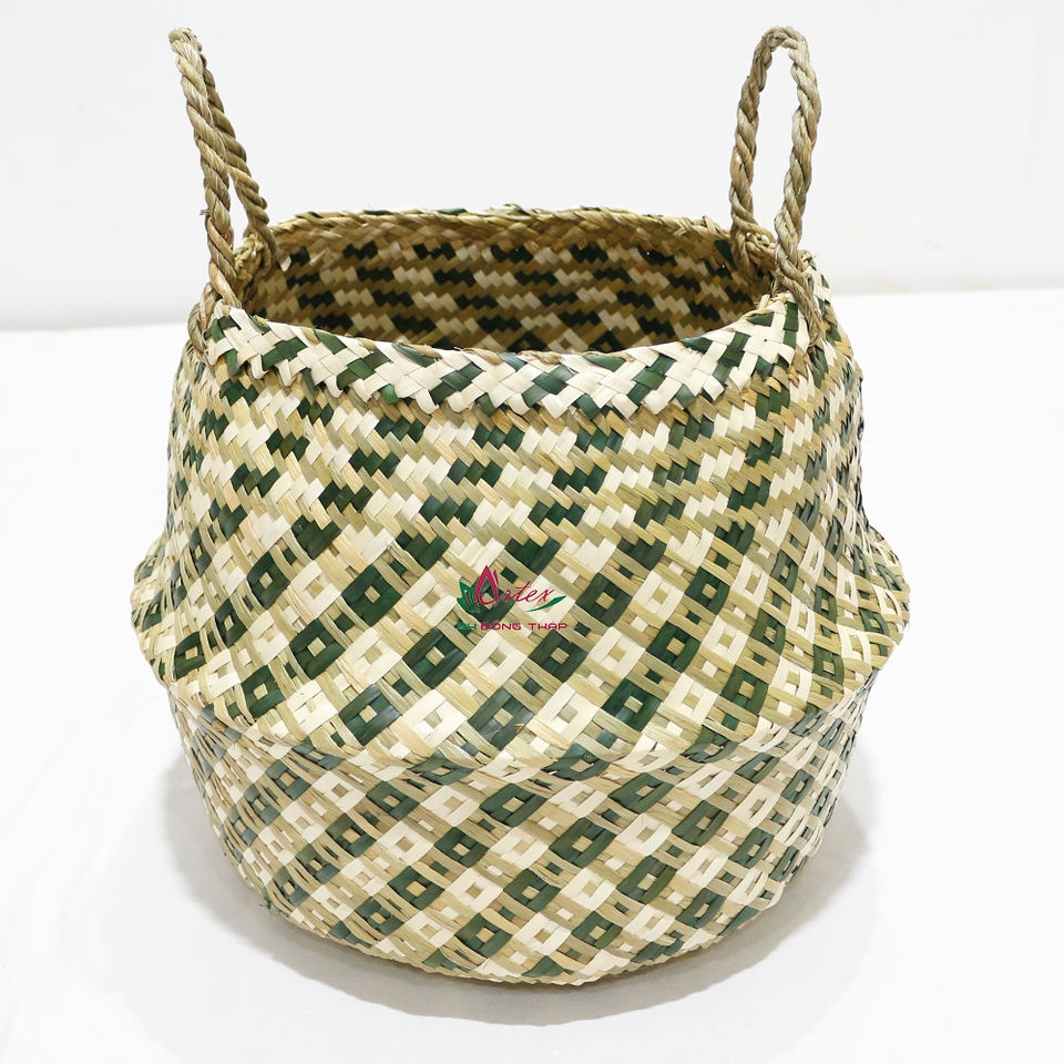 ตะกร้าสานใบปาล์มลายเขียวรักษ์โลก ทำด้วยมือ พร้อมหูหิ้ว สำหรับจัดเก็บของตกแต่งบ้านและต้นไม้ ผลิตภัณฑ์เวียดนาม Artex Dong Thap