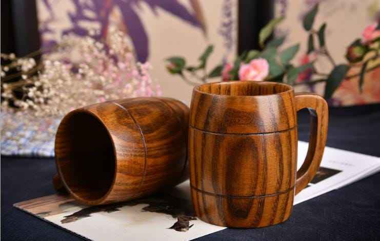 ถ้วยกาแฟไม้ธรรมชาติทำด้วยมือเป็นมิตรกับสิ่งแวดล้อมพร้อมด้ามจับแกะสลักสำหรับคนรักกาแฟในราคาขายส่ง
