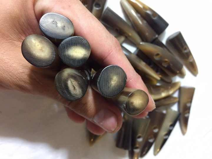 กระดุมหูรูดทำมือจากเขาควายขัดเงา ทันสมัย เป็นมิตรกับสิ่งแวดล้อม มี 2 รู สำหรับเสื้อโค้ทและเสื้อผ้า โดย Saniya Handicraft