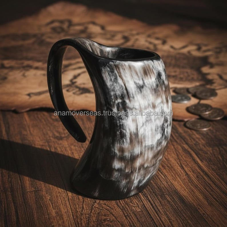แก้วเขาสัตว์ทำมือจากวัสดุออร์แกนิกขัดเงา เป็นมิตรกับสิ่งแวดล้อม ขนาดสั่งทำได้ สำหรับบาร์แวร์ การแสดงบทบาทสมมติ การให้ของขวัญ และตลาดส่งออก
